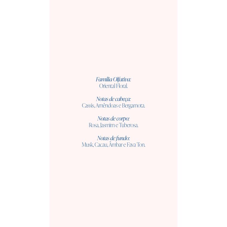 Notas de Corpo: Rosa, Jasmim, Tuberosa;