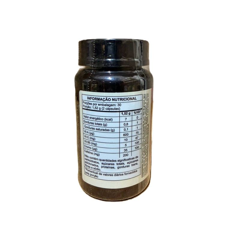 Ingredientes: ÓLEO DE CARTAMO, CAFÉINA ANIDRA, ÓLEO DE GIRASSOL, ÓLEO DE SEMENTE DE UVA, DL-ALFA TOCOFEROL, D-PANTOTENATO DE CALCIO, PALMITATO DE RETINOL, PICOLINATO DE CROMO, EMULSIFICANTE, LETICINA DE SOJA E GLACEANTE CERA DE ABELHA.