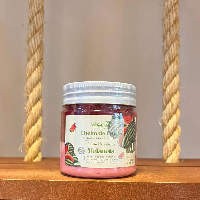 Contém 180gA Geleia Hidratante Cheiro de Frutas de Melancia possui textura bifásica, que promove na pele a sensação de leveza, maciez e um agradável perfume. Contém extrato de Frutas Vermelhas, ativo com propriedades suavizante e antioxidante que auxilia na preservação da elasticidade da pele evitando o ressecamento e mantendo-a hidratada. Cruelty Free
