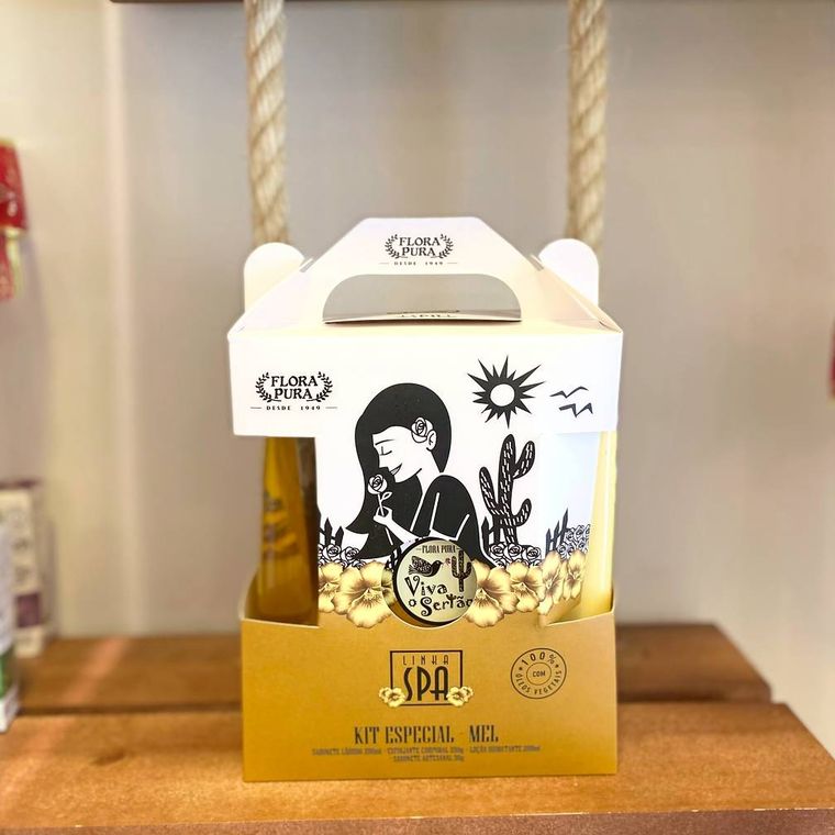 Essa é a linha Spa da Flora Pura,reunindo os extratos do sertão fizemos toda essa mistura para trazer ao seu corpo perfume e hidratação.