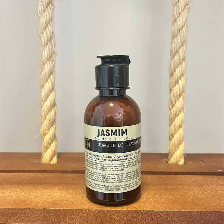 O leave in de Jasmim utilizado como finalizador para todos os tipos de cabelo , formando um filme protetor ao redor das fibras capilares, mantendo a umidade natural, facilitando na hora de pentear, deixando os fios mais disciplinados e com um delicioso perfume, na sua formulacao possui oleo de alecrim capaz de prevenir contra caspa, psoriase e seborreia e e um excelente estimulante e tonico capilar.