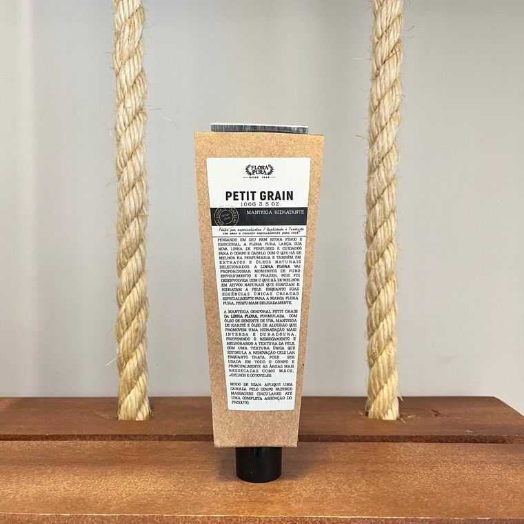Manteiga corporal Petit Grain da linha flora, em sua composição contém óleo de semente de uva, manteiga de karité e óleo de algodão que promovem uma hidratação mais intensa e duradoura, prevenindo o ressecamento melhorando a textura da pele. Com uma textura única que estimula a renovação celular enquanto trata, pode ser usado em todo o corpo principalmente nas áreas mais ressecadas.
